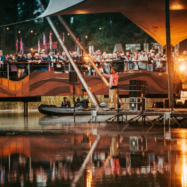 The Waterfront Stage is one of the most breath-taking performance settings in the British festival calendar, a floating stage perched at the edge of the Latitude lake in the grounds of Henham Park, where audiences watch from the grassy bank as performers appear to rise from the lake itself. The stage has played host to world-class productions, including Matthew Bourne’s Swan Lake and the English National Ballet’s Four Seasons.